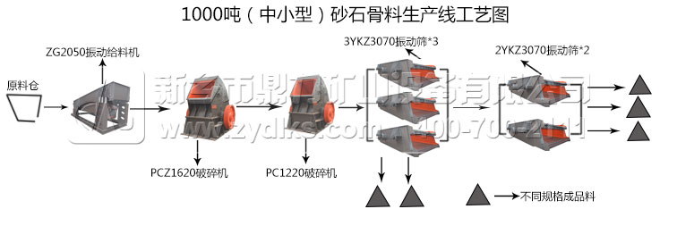 给料系统选择仓下给料机ZG1228,仓下给料机稳定给料,设备性能优越,可以供应给料,并且可以根据需求,有漏土型,提高物料的洁净度。破碎设备选择重型锤式破碎机PCZ1512,这一型号在新乡鼎力设备中属于中型号的设备,破碎时产范围是250-320吨,进料大粒度为750mm,该设备由2台160KW电机提供动力。筛分设备则选用两台3YK2450和两台2YK2460,这样合理搭配可以筛分出五种不同规格的成品料,可以根据需求改换筛网,以改变需求物料的粒度大小。