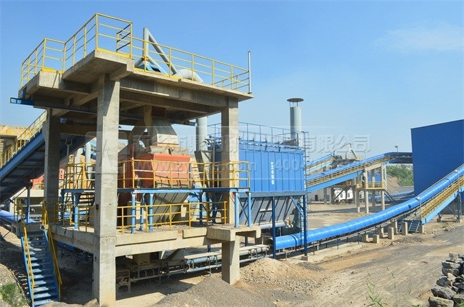 具体配置流程为:石料——料仓——振动给料机——颚式破碎机——皮带输送机——强击式破碎机——皮带输送机——圆振动筛——皮带输送机——成品物料。