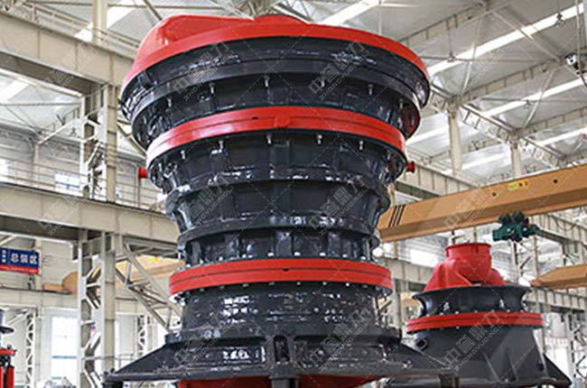 3、旋回式破碎机简要易操作:不需要拆掉横梁,便可轻易改换横梁衬套以及密封,即便是拆卸横梁,也有辅助工具液压横梁分离器,带切割环的动锥锁紧螺母,拆卸动锥衬板更简要,自动的主轴位置控制装置,轻松控制产品粒度,还可补偿衬板磨损。