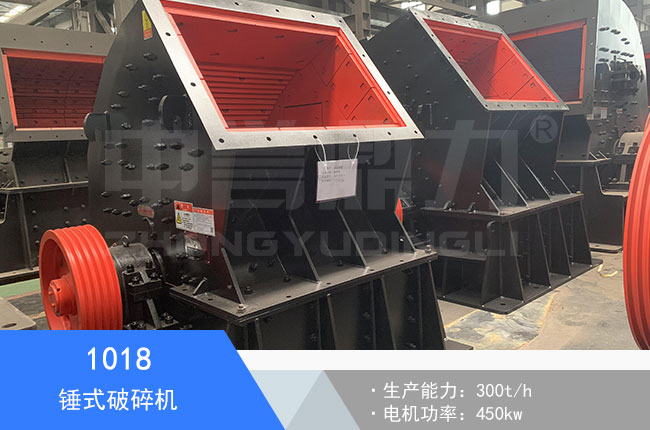 1018锤式破碎机时产量为300吨,多用小型砂石生产线中,出料均匀,粒度小,可以搭配制砂机出机制砂。