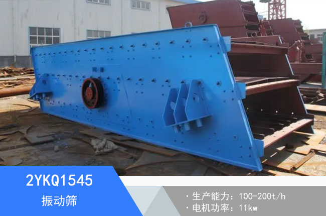 2YKQ1545振动筛也叫轻型筛,这个型号的振动筛每小时的产量在100-200吨左右,电机是11kw的。该设备可对粉状、颗粒状物料的筛选和分级,广泛应用于塑料、磨料、化工、医药、建材、粮食、炭素、化肥等行业。